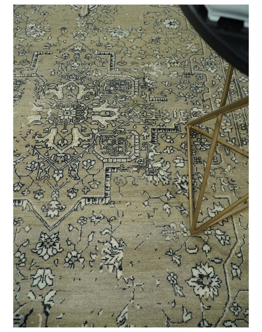 8x10 Antique look Traditional Floral Gray, Rust and Beige Hand knotted wool Area Rug