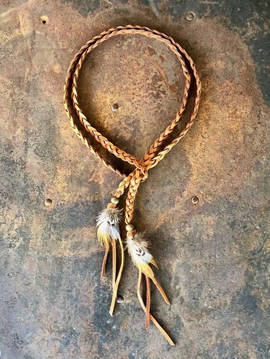 Versatile Rust Braided Deerskin Leather Necklace with Pheasant Feathers