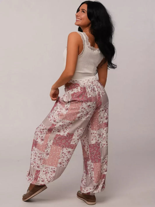 Reversible Plaid/Floral Wide Leg Boho Pants