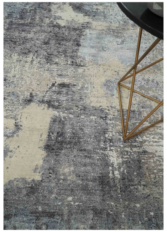 8x10 Charcoal, Beige and Gray Modern Abstract Distressed Finish High Low texture Hand Knotted Rug