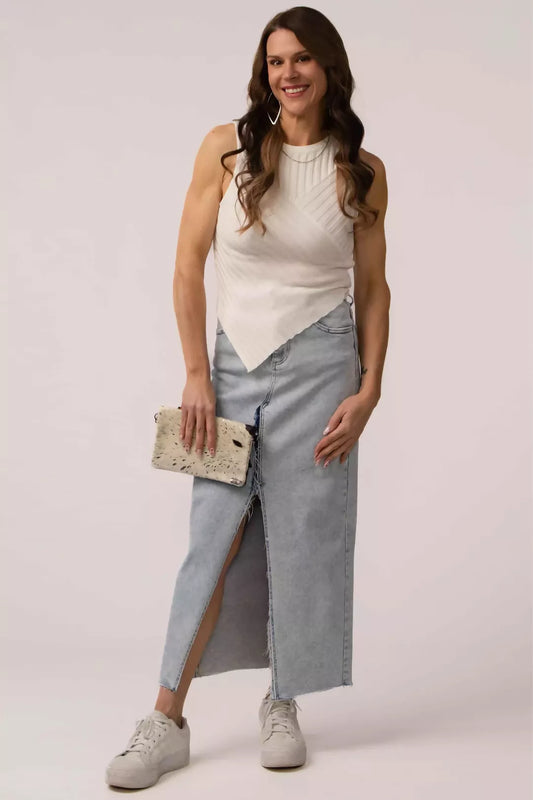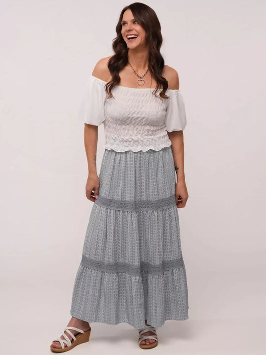 Delaney Lace Floral High Low Ruffle Maxi Skirt