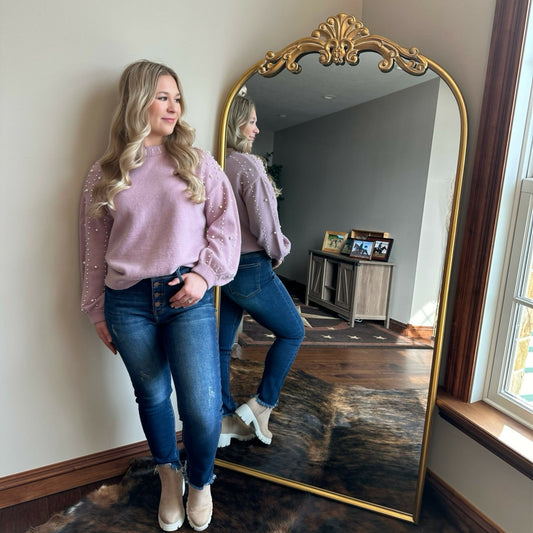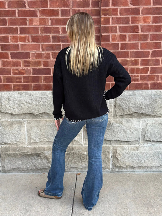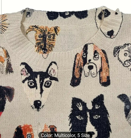 Anytime Crystals Long Sleeve Lightweight Fall Dog Print Sweater