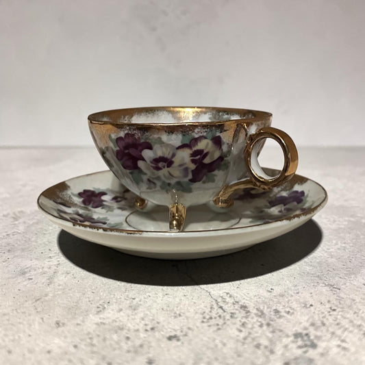 Vintage China Teacup and Saucer Violets Pattern