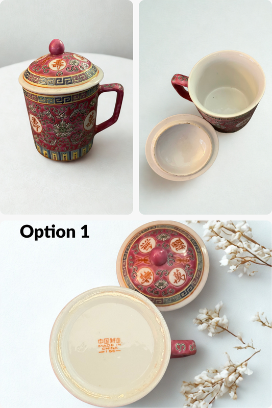 Vintage Chinese Jingdezhen Famille Rose Medallion Tea Lidded Mug