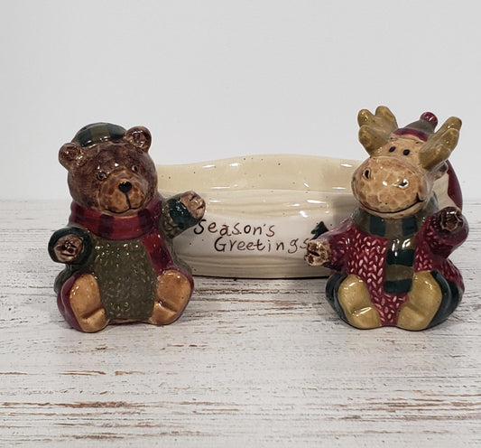 Estellas’s Heartland St. Nicholas Square Moose Bear Canoe Salt Pepper Shakers Christmas