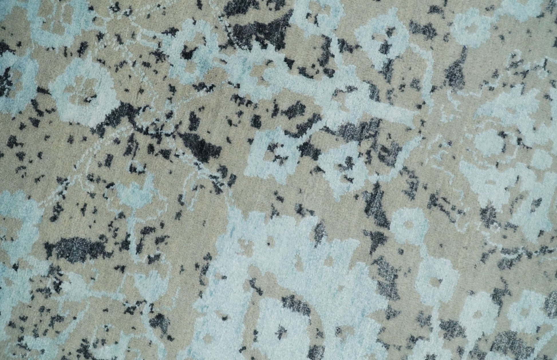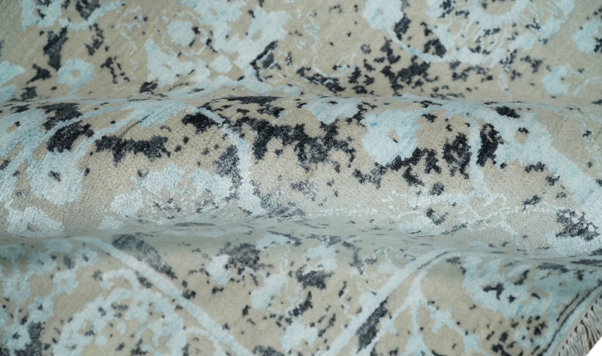 4x6 Fine Hand Knotted Aqua, Beige and Black Traditional Vintage Persian Style Antique Wool and Bamboo Silk Rug | AGR10
