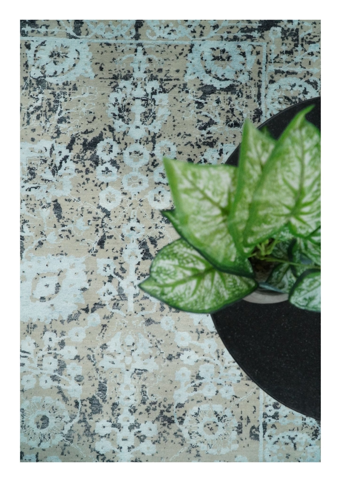 This specific rug is made in India, in the city of Bhadohi. Bhadohi is one of the biggest rug manufacturing cities. Carpet weaving in the region dates back to the 16th century during the reign of Akbar. The skilled artisans of Bhadohi have been carrying the tradition of rug-making for centuries.