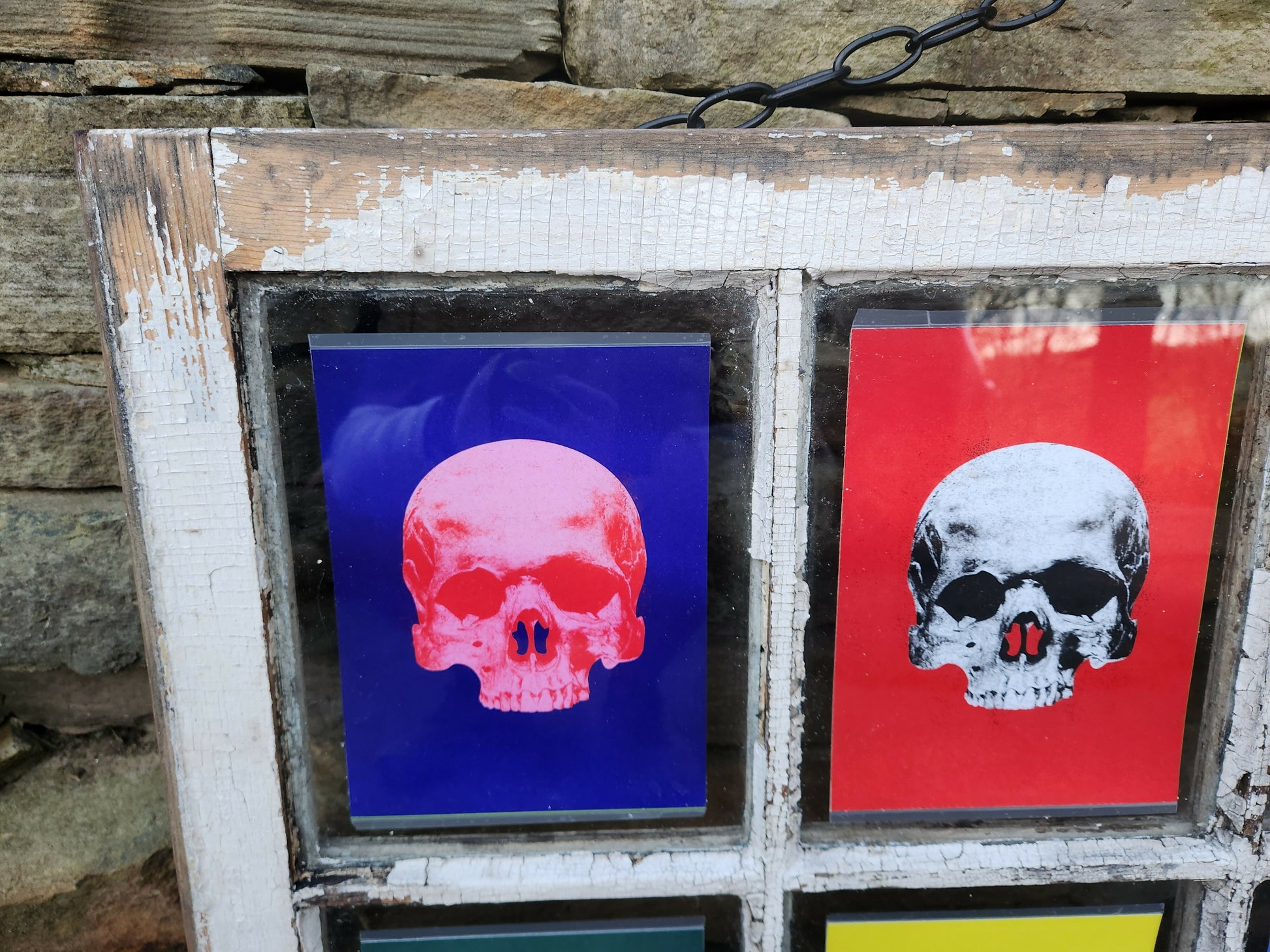 Andy Warhol prints mounted into an antique window pane.