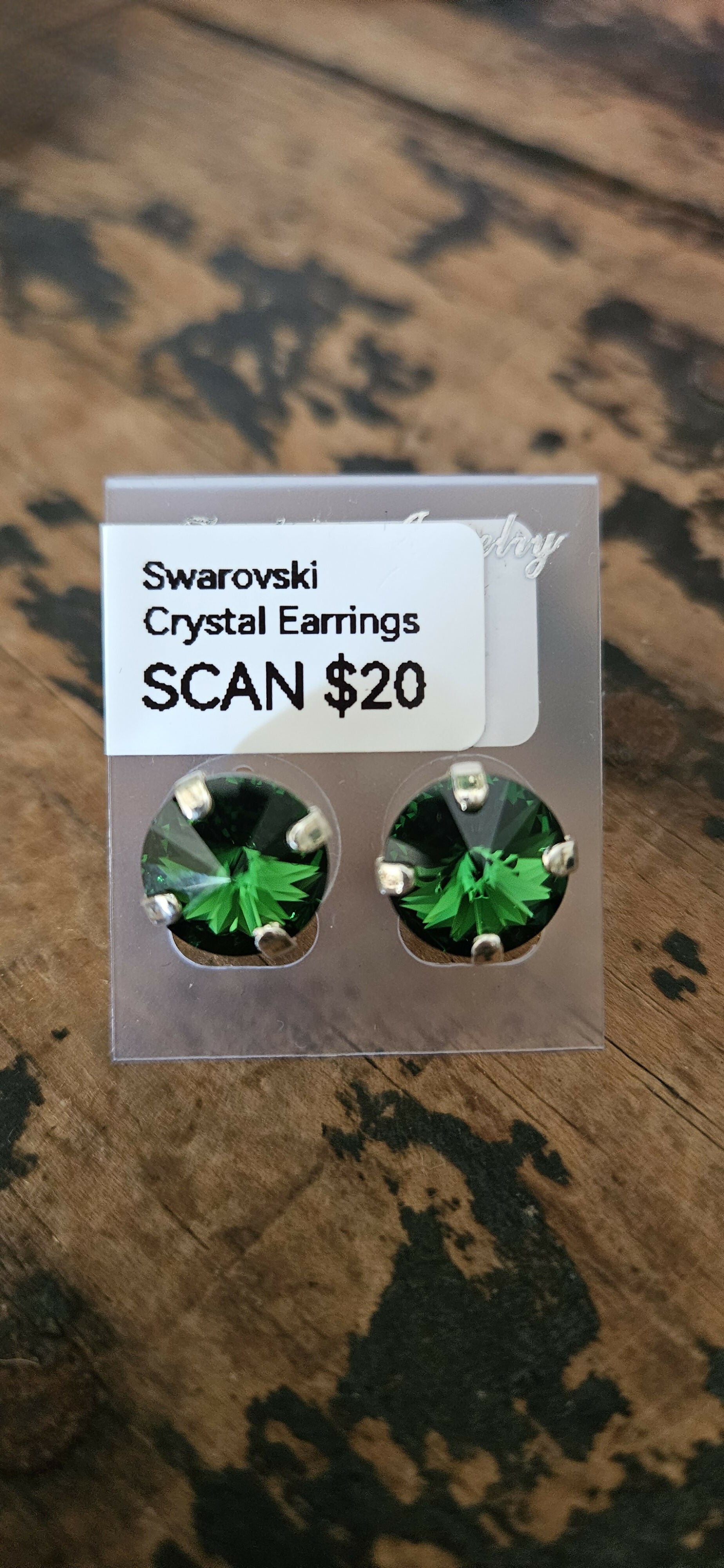 Anytime Crystals is offering these 12mm Pine Green earrings. This pair features a stud design in a silver overlay setting.