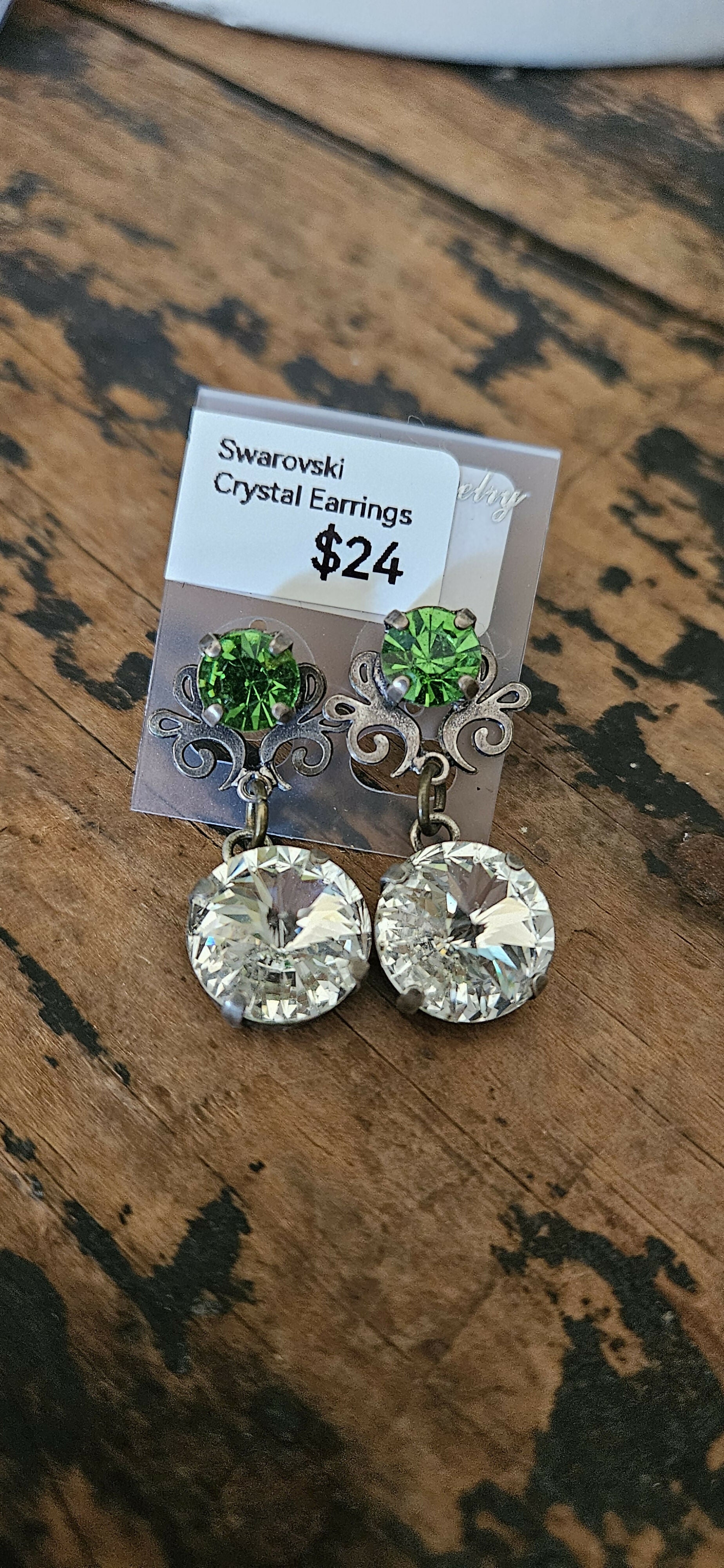 Anytime Crystals 8.5 & 12mm Ice & Moss Earrings