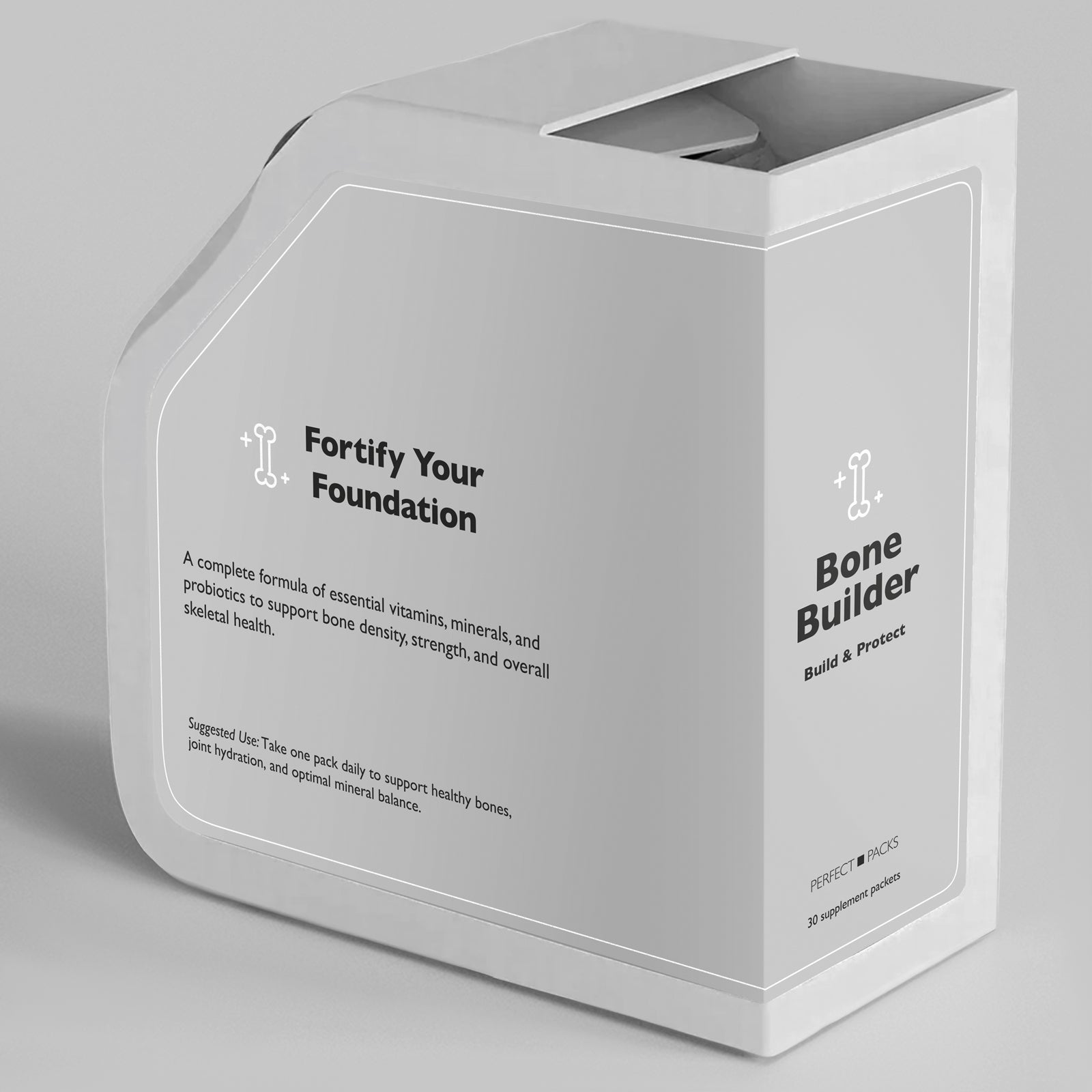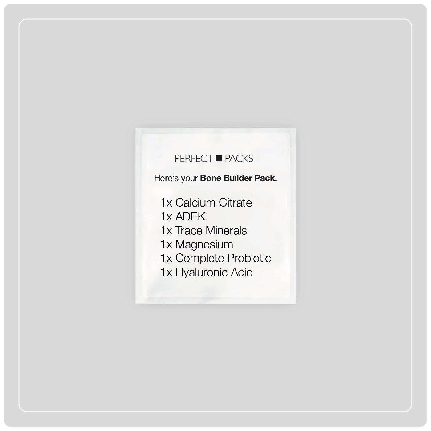 The Bone Builder Pack combines a powerful blend of vitamins, minerals, probiotics, and hyaluronic acid to support optimal bone metabolism. Featuring Calcium Citrate, ADEK, Trace Minerals, Magnesium, Complete Probiotic, and Hyaluronic Acid, this formula is designed to promote bone strength, density, and overall skeletal health. Ideal for daily use, it provides essential nutrients to help maintain strong, resilient bones and support your body’s natural bone-building processes.