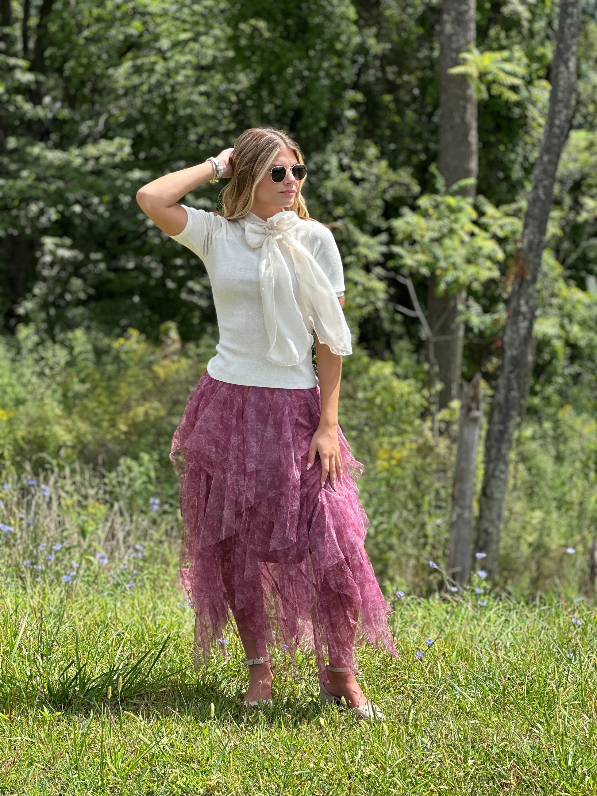Model Specs: 5’7, 32” bust, 24” waist Wearing size small