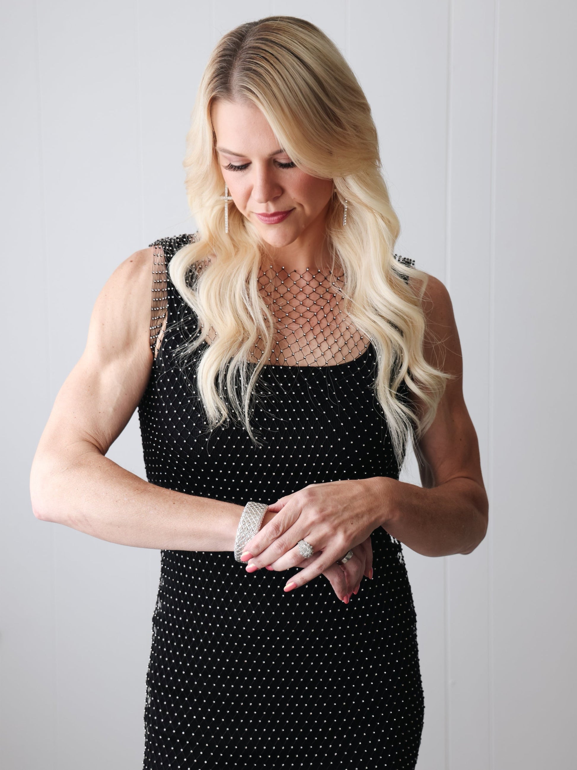 Get ready to wrangle hearts with our Cowgirl Crush dress! This playful cover up dress features a fishnet rhinestone design and a mesh sleeveless mini dress. For a bold and stylish look, pair it with our midnight kiss midi dress. Giddy up and stand out in this unique and flirty outfit!