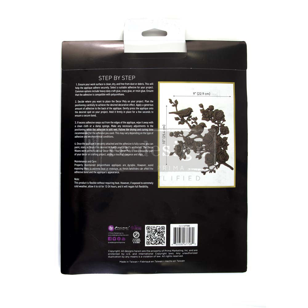 Bring a touch of nature to your décor with Serene Perch Right Décor Poly™. These beautifully detailed appliqués feature graceful birds perched among blooming roses and branches, adding timeless charm to furniture, cabinets, or creative projects. Their flexible design adapts easily to curves and edges, making application simple. Coordinates beautifully with Serene Perch Left Décor Poly™.