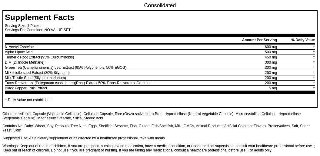 DIM (Diindolylmethane) – A natural compound that supports estrogen metabolism and promotes hormonal balance. DIM helps the liver process toxins and excess hormones, contributing to overall detox and liver health.