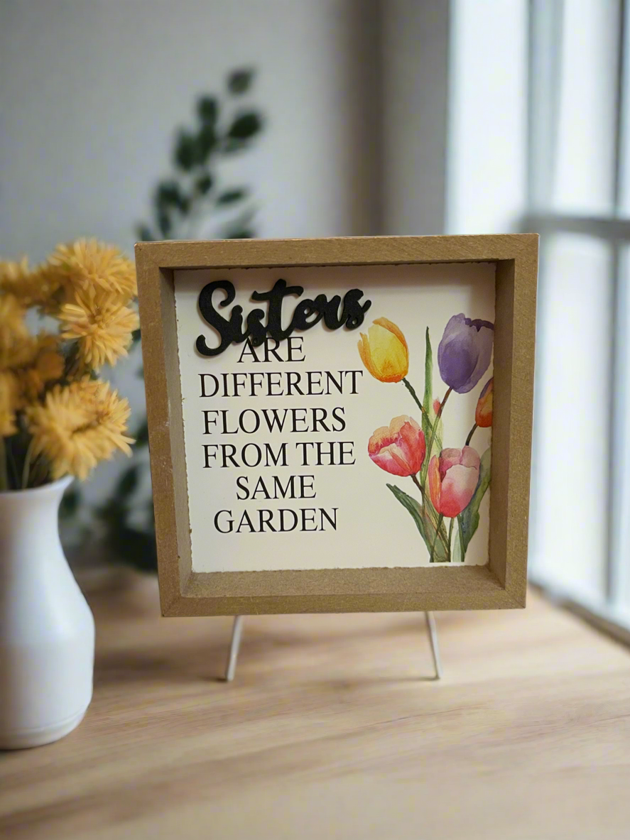 Sisters Sign- Sisters are different flowers from the same garden