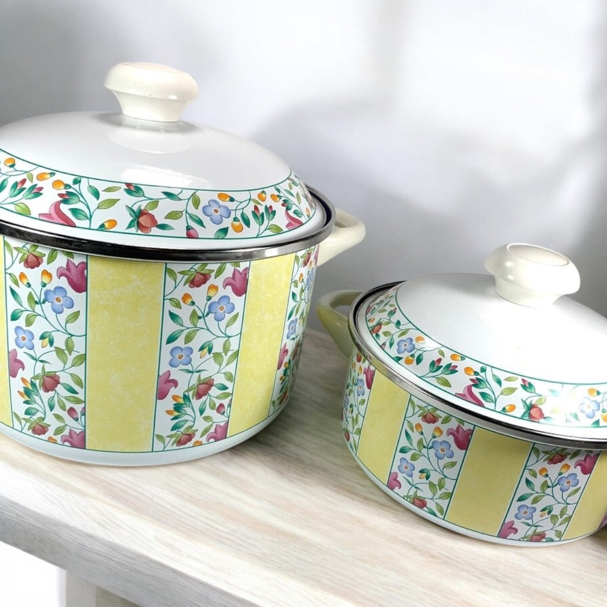 Pair of matching Villeroy & Boch cooking pots in the Virginia pattern. Both are in excellent condition with little to no signs of wear. The larger is a 5 qt and the smaller is 1.5 qt. Please see the images as an extension of the description.