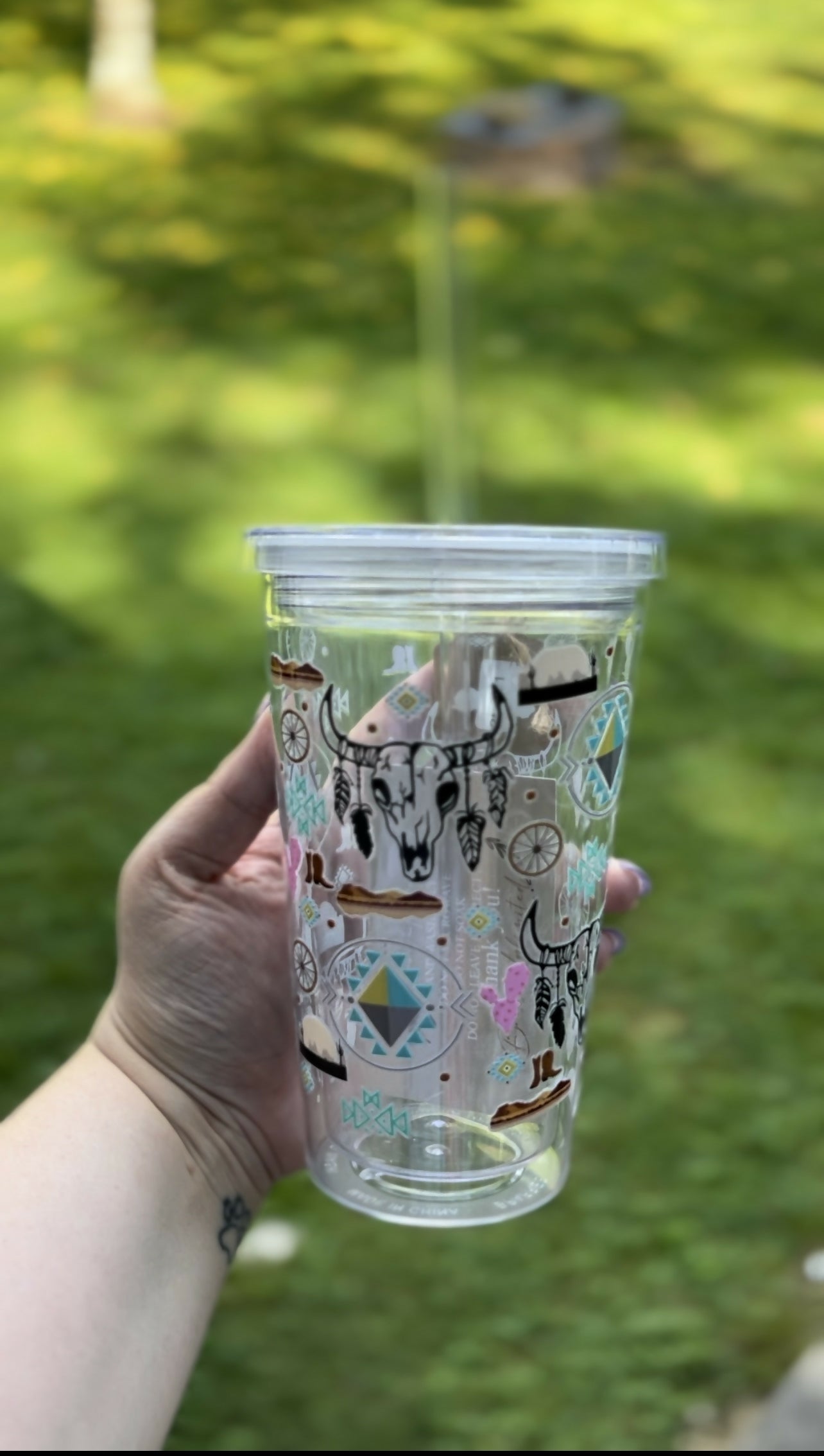 16 oz acrylic tumbler with a western decal wrap.